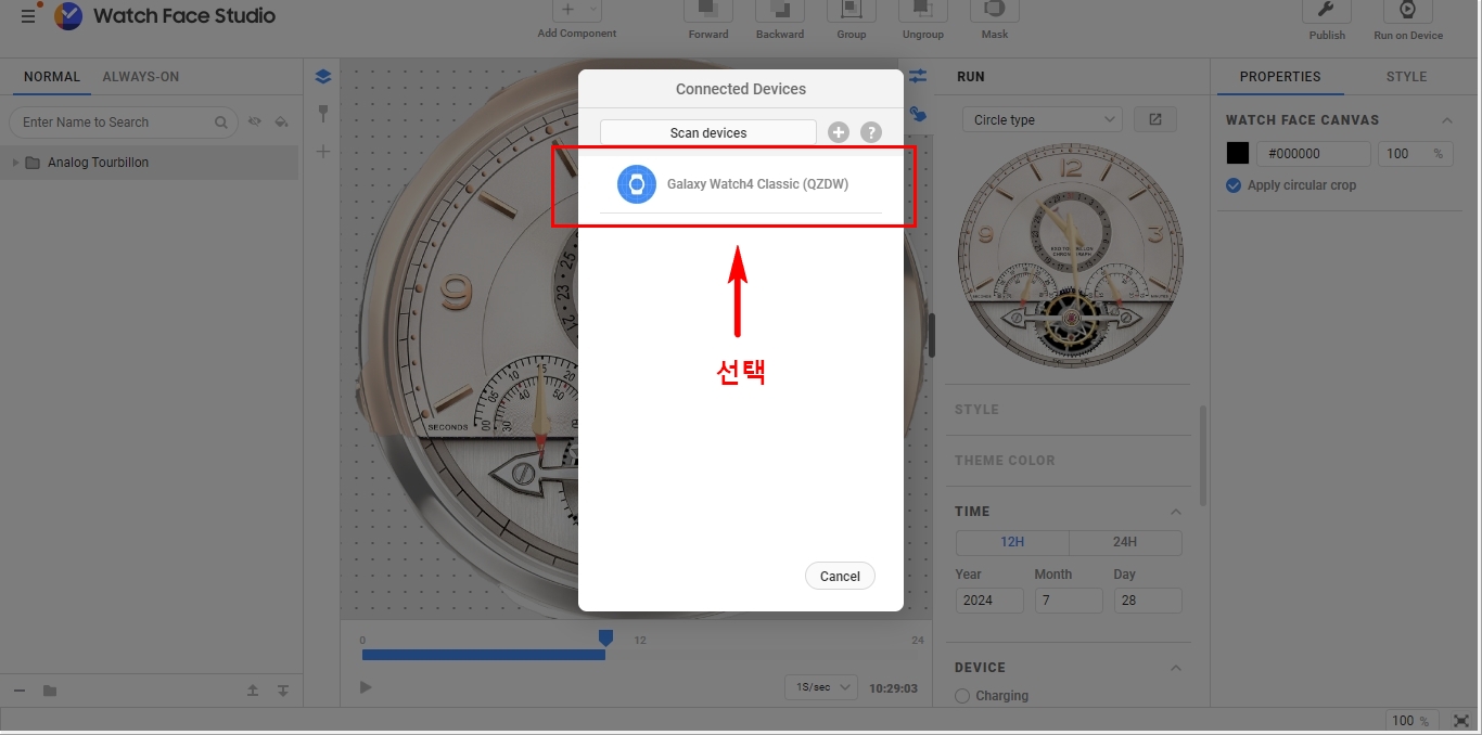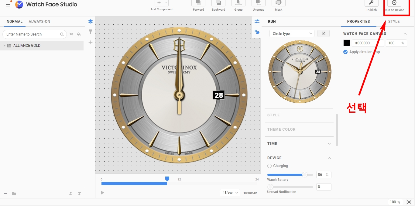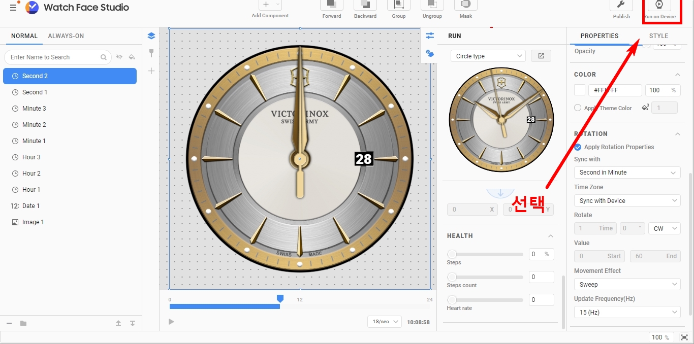 3. 이제 다시 워치 스튜디오로 와서 Run on Device를 눌러 진행합니다