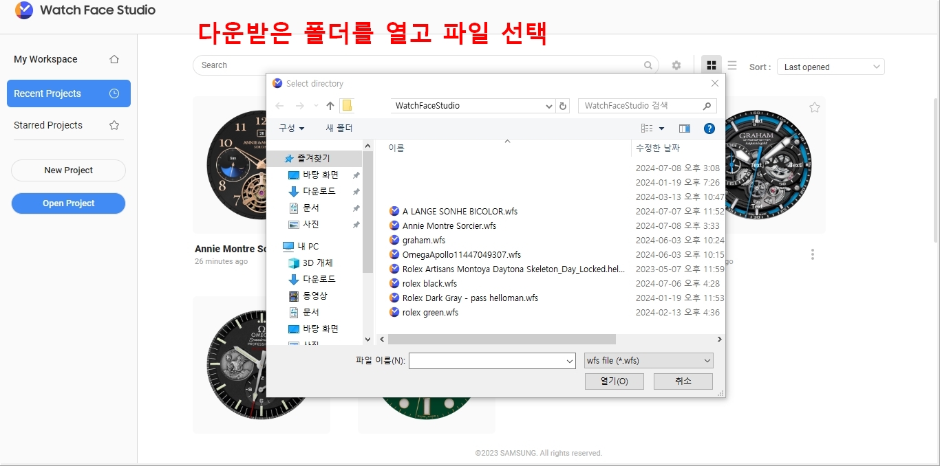 따라서 gwd 파일을 갤럭시 워치 시계에 전송하기 위해서는 반드시 WatchFaceStudio 프로그램을 설치해야 합니다