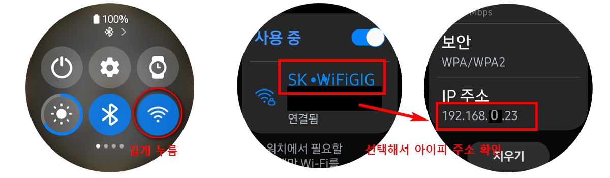 이때 워치 와이파이와 같은 와이파이를 사용해야 합니다.