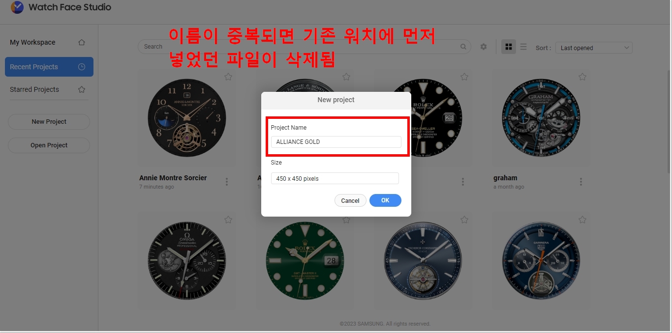 GalaxyWatchStudio 에서 작업은 가능하나 더이상 지원이 중단되여 전송이 불가 합니다